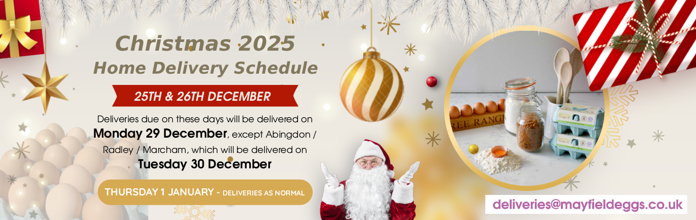 Mayfield Free Range Eggs is the passion of three generations of an Oxfordshire farming family committed to providing the best care possible for their hens – roaming free on acres of lush, grassy fields, with plenty of space for natural hen behaviours such as dust bathing and foraging. We are proud to serve the majority of Oxford University Colleges, a range of high quality Oxfordshire hotels, restaurants and delicatessens.